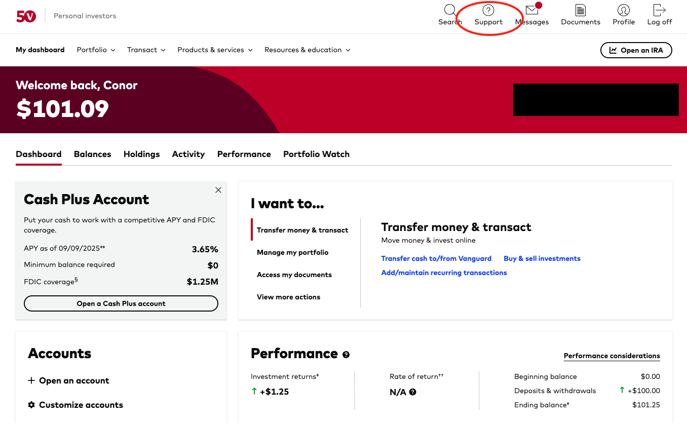 - Call Vanguard’s customer service at 877-662-7447