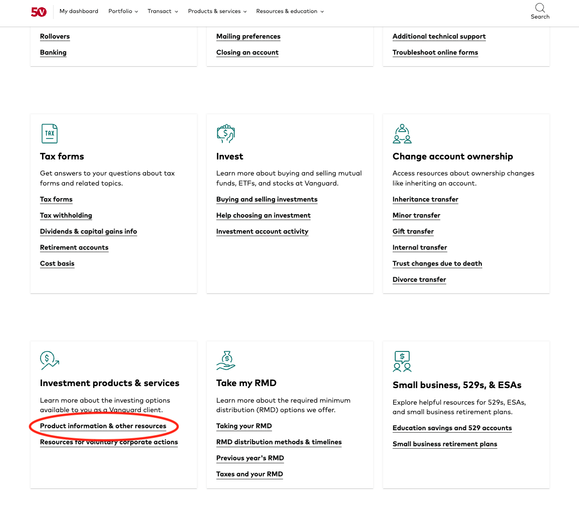 - Under the "Investment products & services" section, click "Product information & other resources"