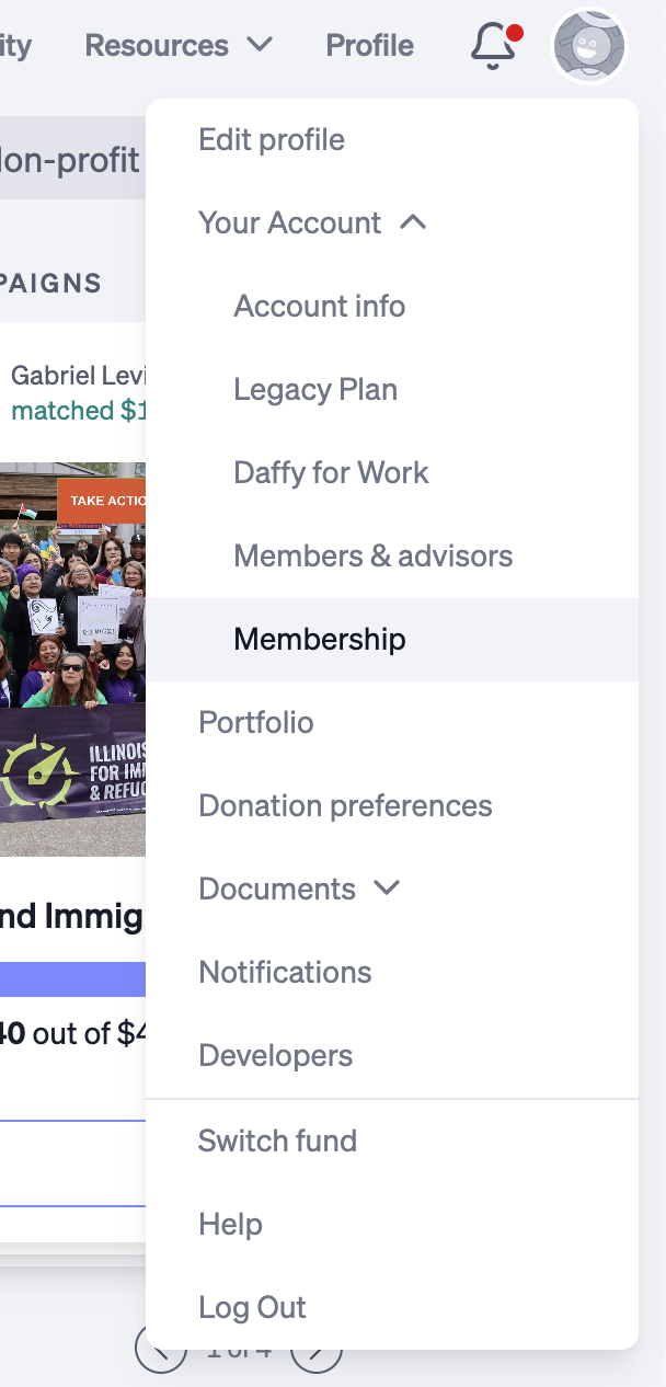 To find this, log in to Daffy on mobile or PC > click your avatar picture in the upper right.